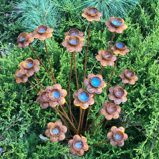 Rusty tiny flowers set of 20, 20 Rusty flowers garden stakes, Metal garden decor, metal yard art, outdoor metal decor, Rusty garden decor