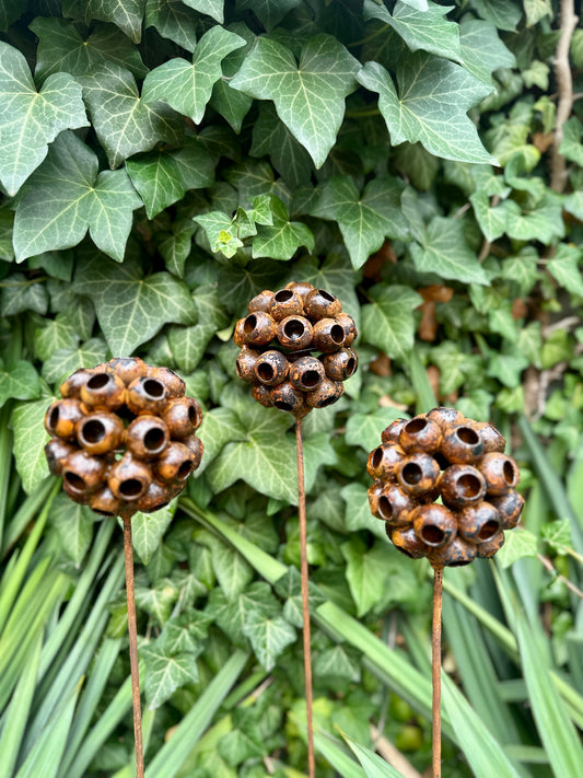 Set of 3 Rustic Metal Exotic Flowers, Garden Decorations, Rustic Landscaping, Garden Art, Bee and Butterflies Cups