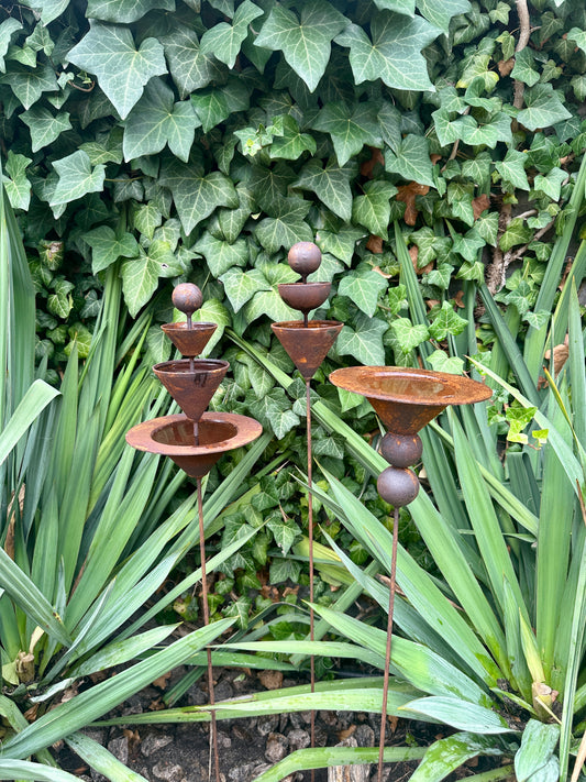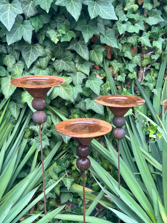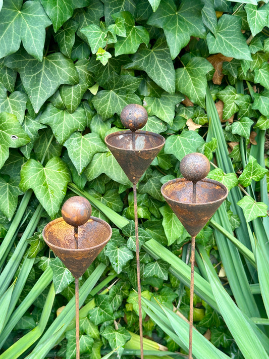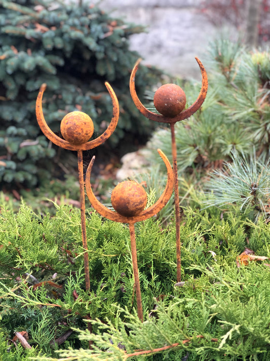Set of 3 Rusty Metal garden stakes, Rusty garden finials, Metal garden decor, metal yard art, outdoor metal decor, Rusty metal garden decor