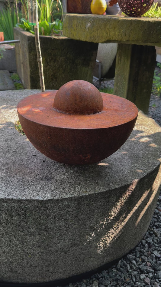 Unique Garden Accent: Contemporary Rusty Metal 27’' Half Sphere Outdoor Sculpture - Minimalistic Art