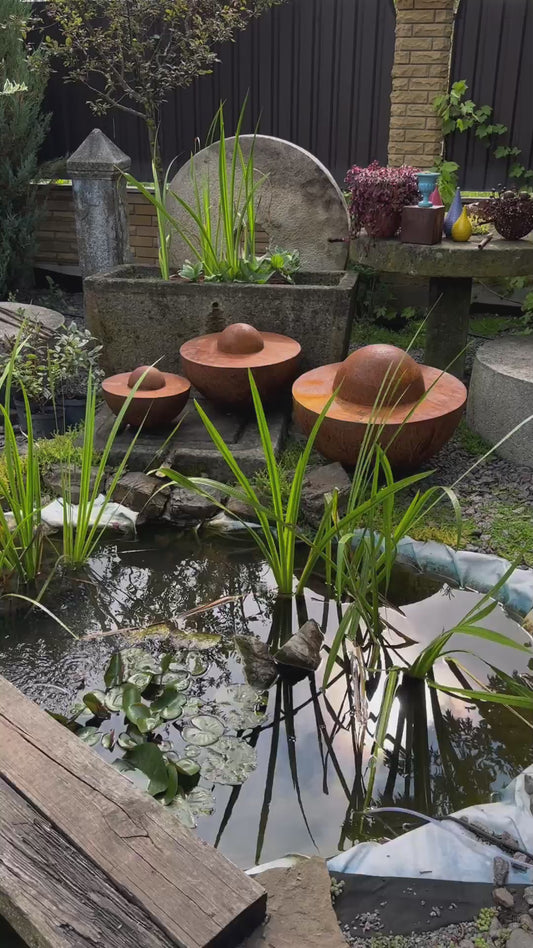 Set of 9 rusty metal balls, Rusty decor, Garden sphere, Yard art