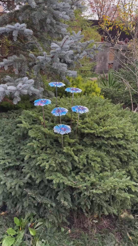 Six Elegant handmade blue metal flowers garden stakes outdoor decor - Perfect for Outdoor Decor