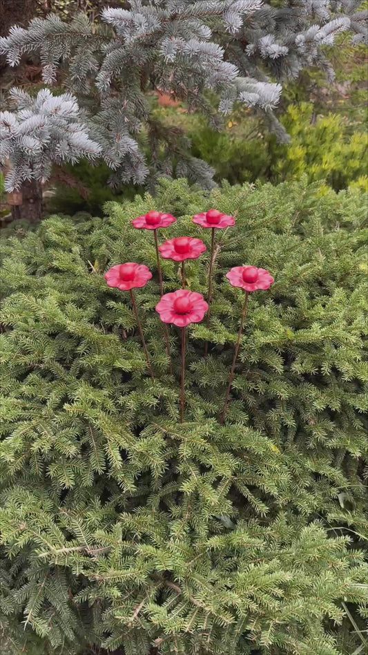 Metal flowers set, 6 Metal flowers garden stakes, Metal garden decor, metal yard art, outdoor metal decor, Metal garden decor