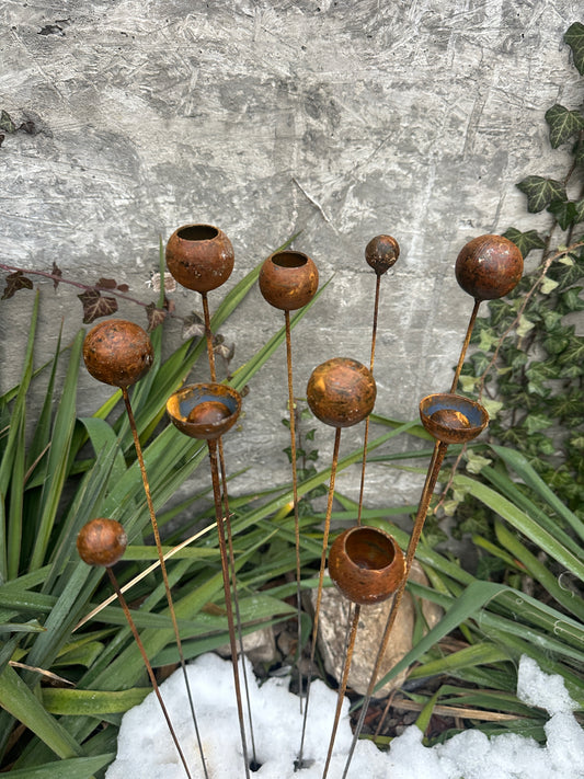 Rusty flowers set of 10, Metal rain catchers, yard art, outdoor metal decor, Rusty metal garden stakes