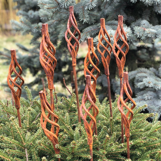 Rusty Flower Garden Stakes - Metal Mini Rain Catchers, Unique Outdoor Garden Decor