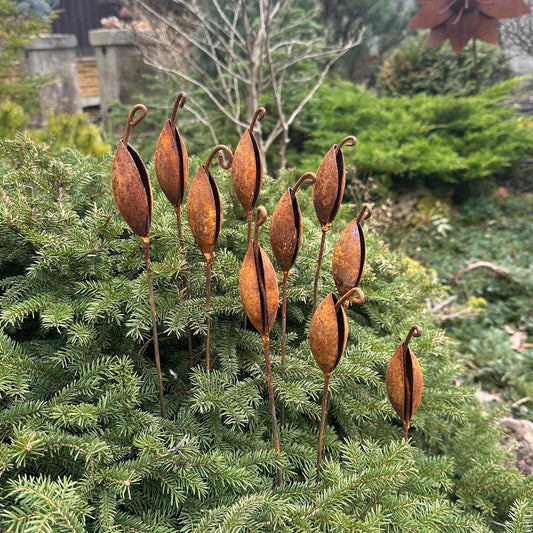 Rusty flower buds set of 6, Metal Rain Catchers, Bee Cups Outdoor Garden Decoration, Bees Garden Decoration, Water Station, Garden Stakes