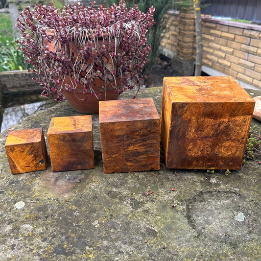 Handmade Rusty Metal Cubes Set – Minimalist Garden Sculpture, Modern Industrial Decor, Weathered Metal Art, Meditative Outdoor Ornament