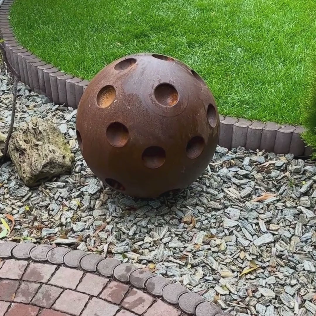 20'' Rusty Metal Sphere Sculpture – Modern art for your garden, patio or home. Perfect as a centerpiece, landscape decor, or artistic accent